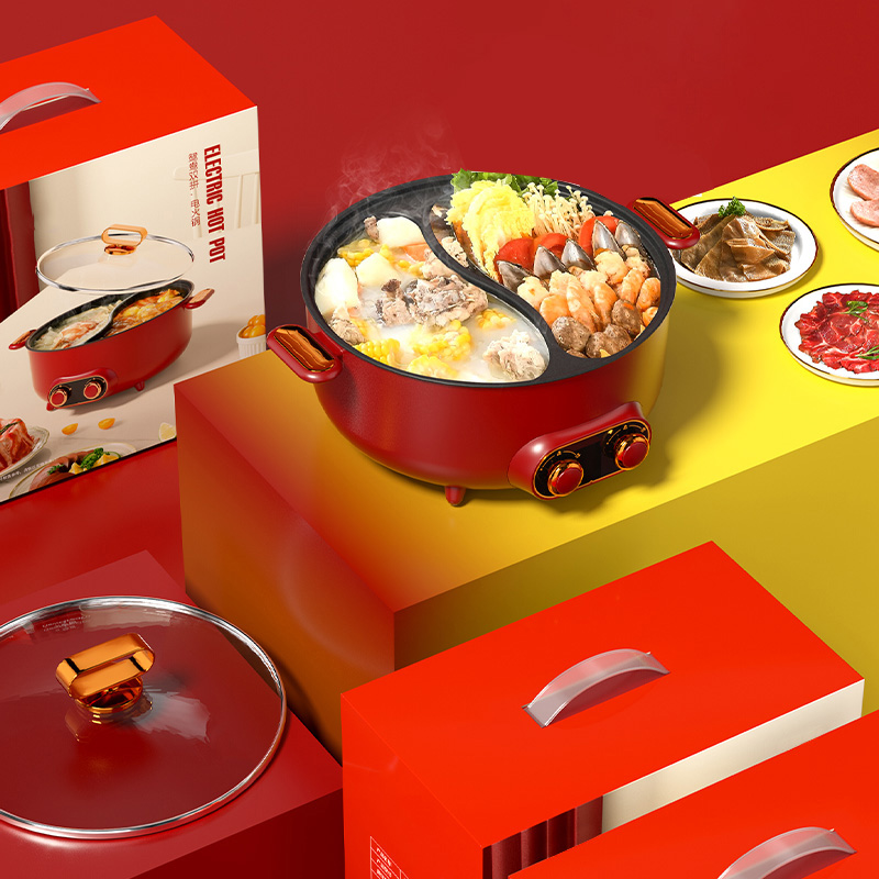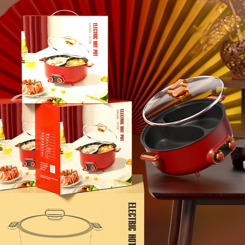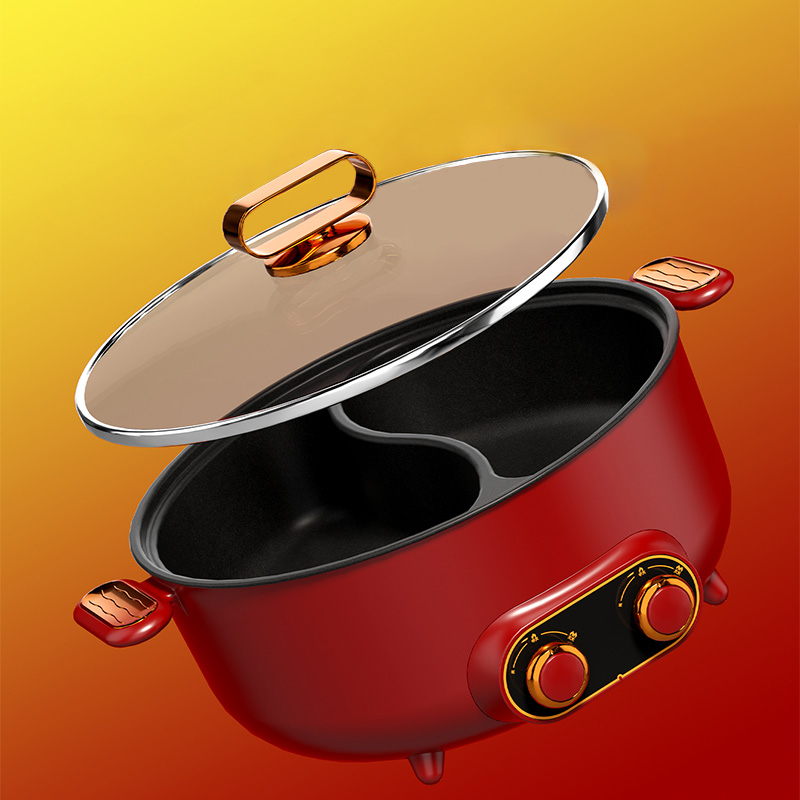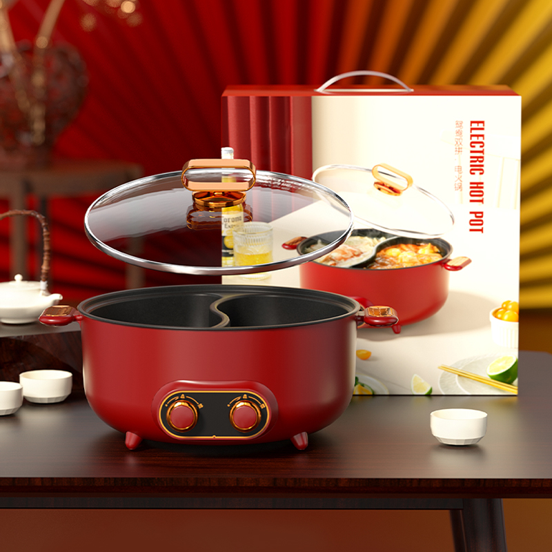 Эта электрическая сковорода с горячим горшком имеет двухсторонний дизайн, позволяющий приготовлению двух разных бульонов одновременно. Его 6 -л потенциала идеально подходит для семейных собраний или общественных мероприятий, в которых можно приобрести различные ингредиенты. Нагревательный элемент 2000 Вт обеспечивает быструю и даже приготовление пищи, в то время как неприемная поверхность делает чистку легкой. Предпочитаете ли вы острый или мягкий аромат, эта горячая кастрюля предлагает удобный и приятный обед для всех.