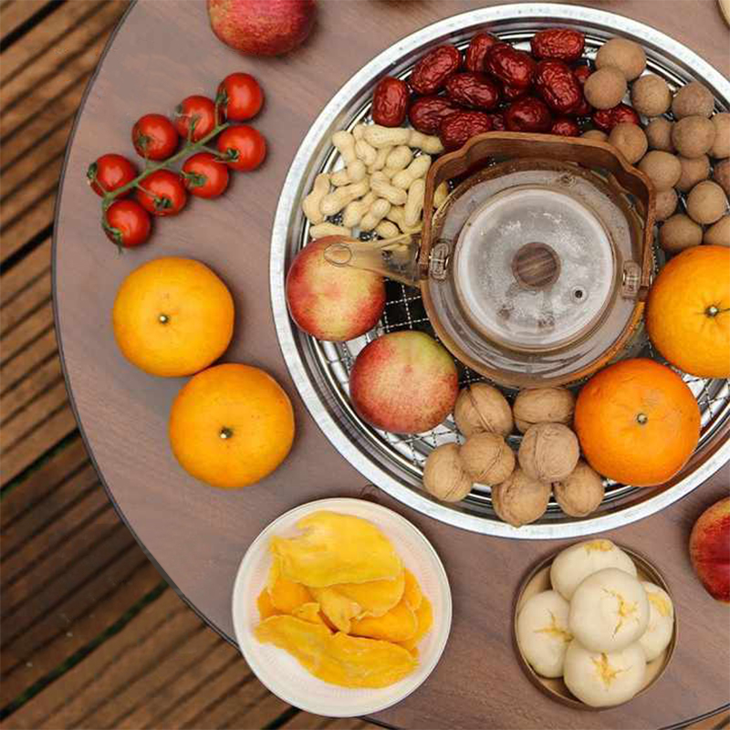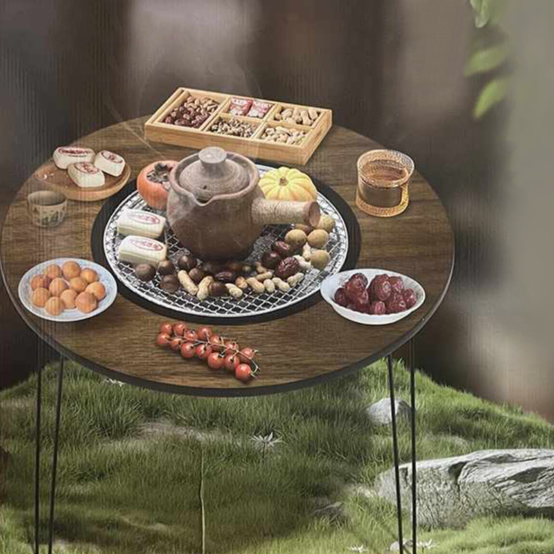 Этот многофункциональный столик для ячейки с огнем хорош для открытых собраний, предлагая центральную яму для угля и деревянная поверхность стола для приготовления пищи или ужина. Его складная конструкция обеспечивает легкую настройку и хранение, что делает его идеальным для поездок для кемпинга или барбекю на заднем дворе. Высококачественные металлические ножки и теплостойкий деревянный стол обеспечивают долговечность и безопасность. Благодаря эффективной системе сжигания, этот стол огненных ям обеспечивает стабильный и приятный опыт приготовления пищи, будь то гриль, нагрев пищу или просто наслаждаетесь уютным огнем.